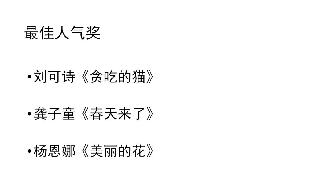 本次大赛经过网络票选和专家评选,最终决出了大赛的最佳人气奖、以及专业评审一二三等奖。在现场莅临的嘉宾为所有获奖的小朋友们颁奖。