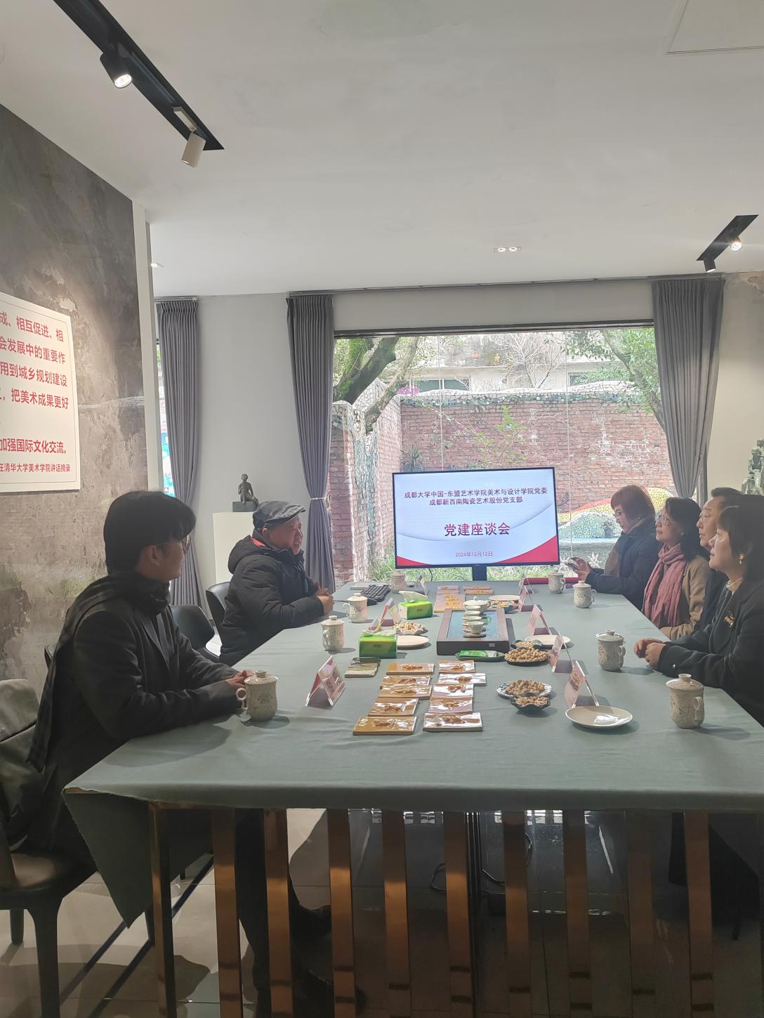 2024年12月12日上午,一场意义深远的党建座谈会在成都新西南陶瓷艺术股份公司顺利举行。此次座谈会由成都大学中国-东盟艺术学院美术与设计学院党委与成都新西南陶瓷艺术股份公司党支部共同主办,旨在深化双方党组织间的交流合作,并探索中国工艺美术学会手工陶瓷与瓷砖技艺研学基地在产教融合、人才培养、设计创新及产业发展等方面的新路径。