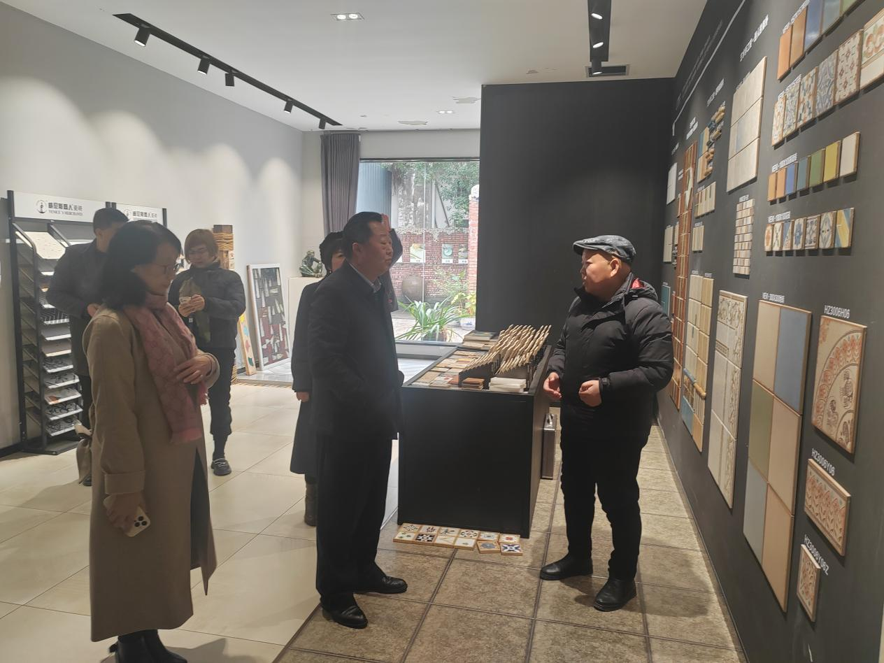 在参观过程中,胡秀强副书记一行详细了解了新西南陶瓷艺术公司如何利用邛窑传统技艺,通过创新传承,开发出独具特色的手工瓷砖、瓷砖家具、瓷砖壁画、陶瓷灯具、陶瓷礼品纪念品等产品,并对公司的创新能力和产品特色给予了高度评价。
