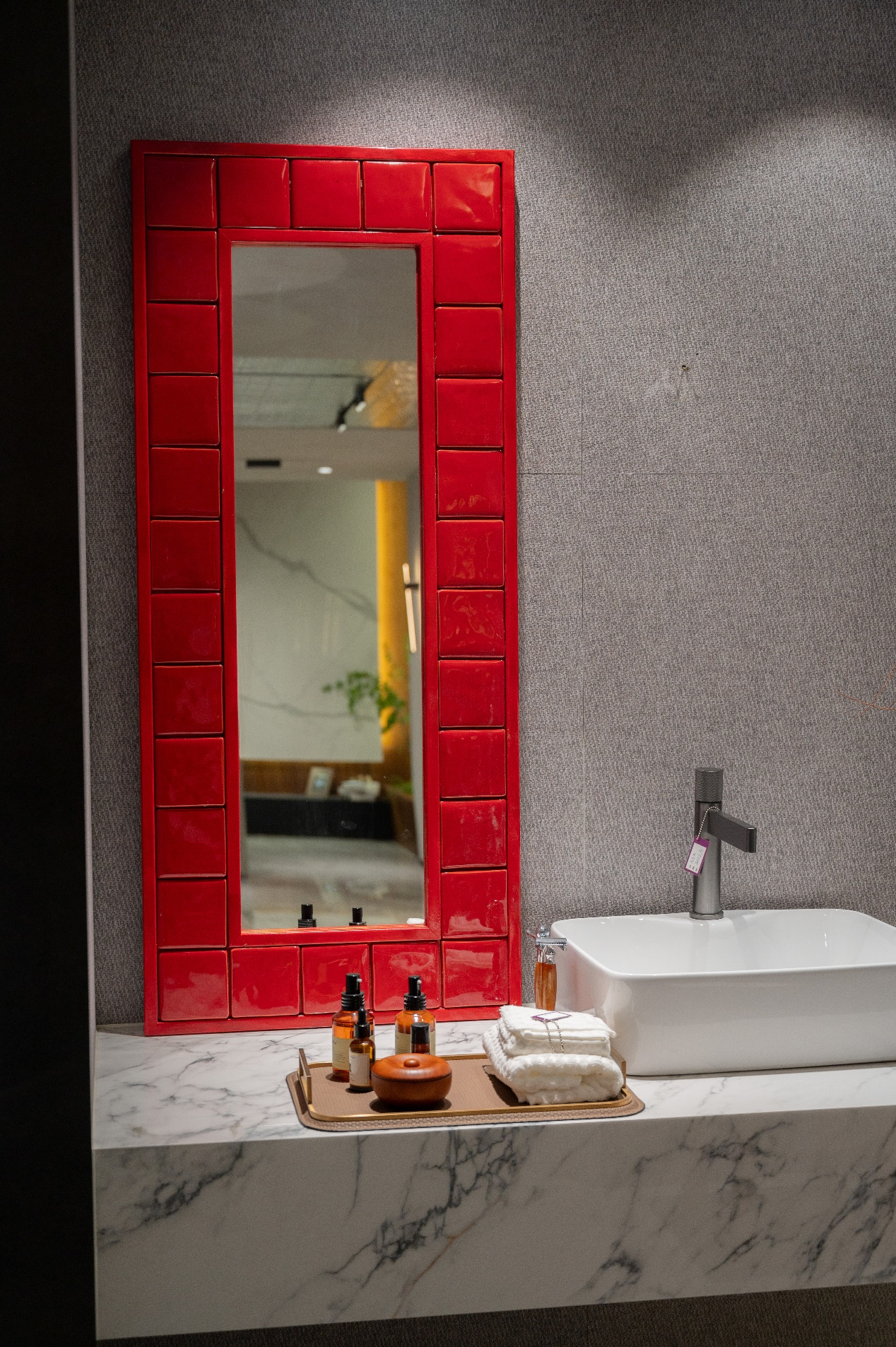 在2024年这个充满爱与希望的年份,新西南陶瓷公司以匠心独运的精神,倾情推出“红镜子”系列嫁妆。每一面红镜子都经过精心打造,采用手工雕琢的红色瓷砖,搭配细腻温润的红色木框,中央则镶嵌着熠熠生辉、纯净无瑕的银镜。这一设计巧妙地将古典美学与现代审美相结合,既保留了传统文化的韵味,又不失时尚感与现代气息。