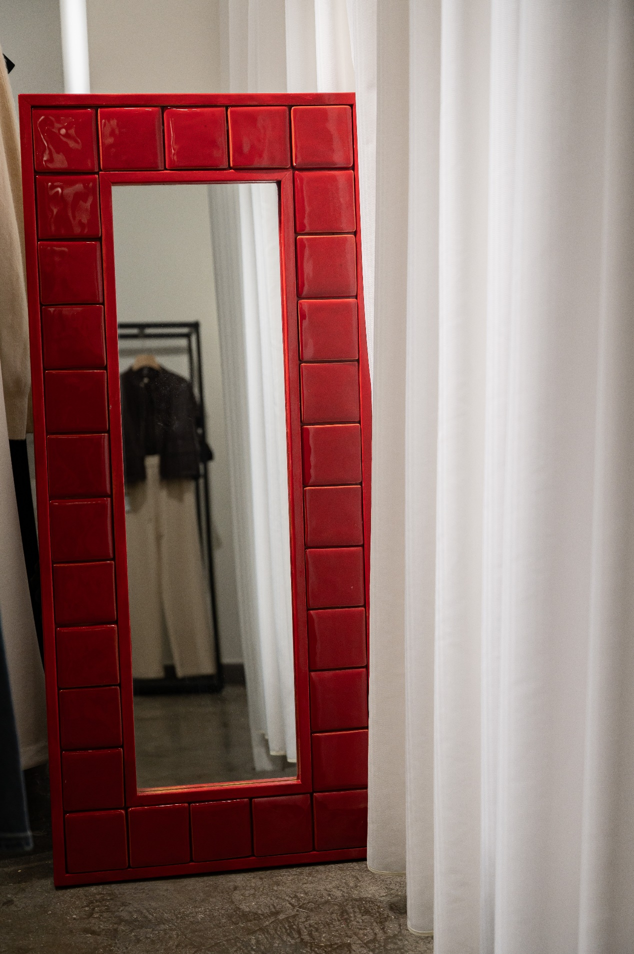 红色木框映手工瓷砖之美,璀璨银镜显纯净之光。红镜子——娘家深情的祝福与珍贵的嫁妆之选,愿为女儿的幸福人生添上浓墨重彩的一笔。