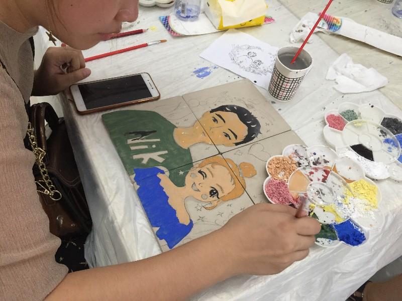 周末闲暇时间,陪陪孩子在瓷砖上画画,