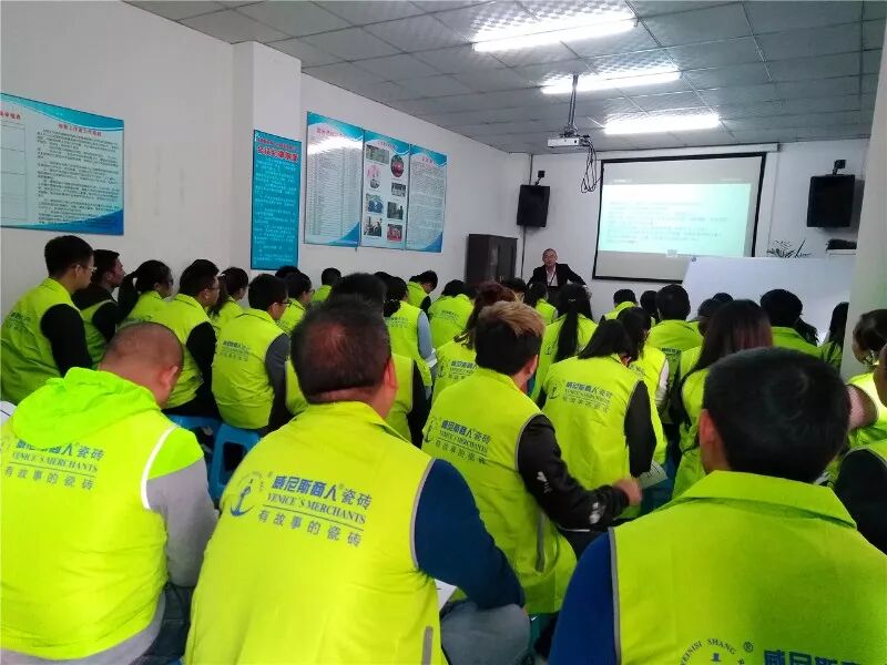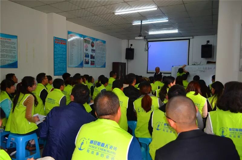公司副总经理徐远江以威尼斯商人瓷砖国内终端新标准为基础,向特训营学员们传授企业与品牌、业务开发与过程管理、销售思维。