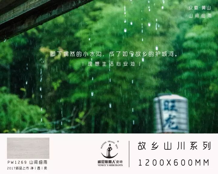 威尼斯商人瓷砖不忘初心,也通过自己擅长的方式,在瓷砖上讲述了每一个人的乡愁故事。故乡山川,便是心灵寄托和情感依赖,是你的理想生活心安处……