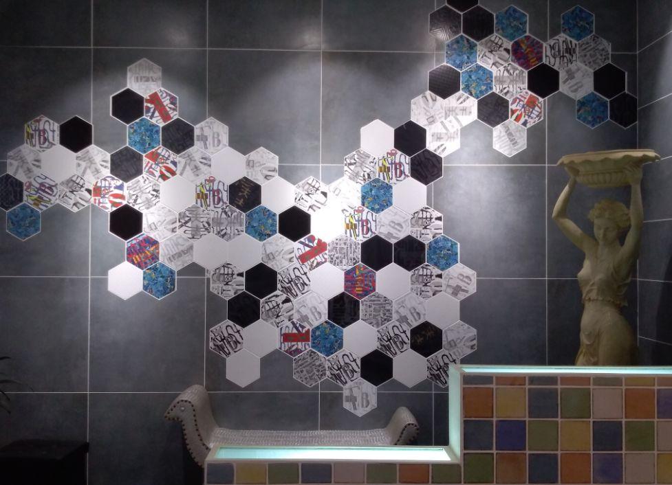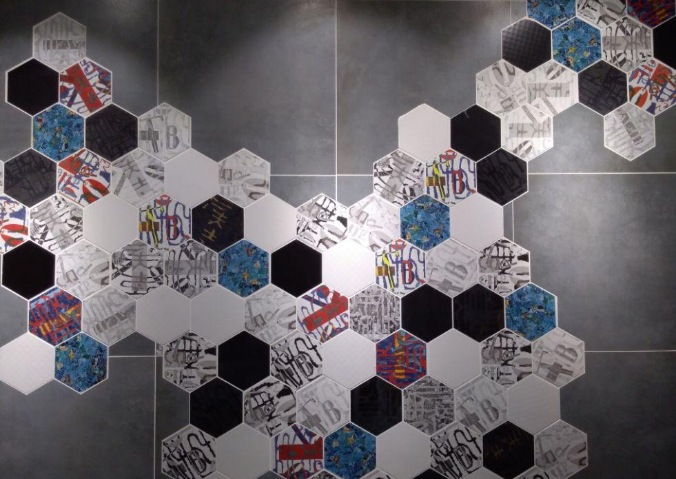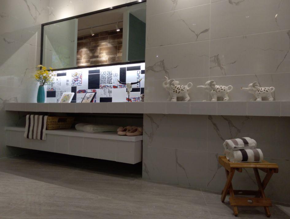 整个展厅将现代审美风格和艺术瓷砖产品特点相结合,