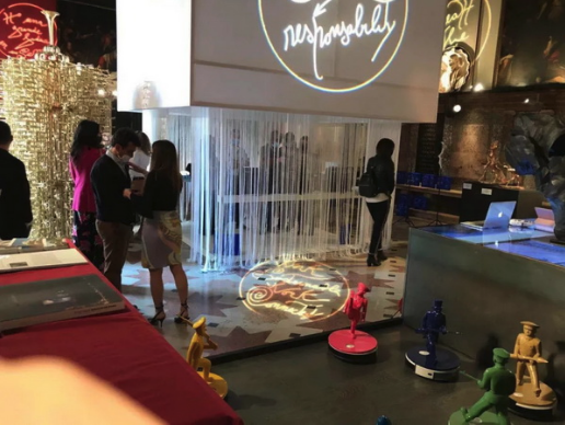 三、展览现场直播及参展艺术家采访随后,参会者借助视频,参观了威尼斯展览现场的艺术家作品。这些精心选择的优秀作品造型别致,手法多样,包含手工塑造、3D打印、艺术装置等;材料极为丰富,主要有综合材料、光敏树脂、铝、不锈钢、太空棉、纸着色、灯光、玻璃等,传达着东西方艺术家在不同文化下的创作理念与艺术追求。作品与威尼斯双年展的现场建筑、环境设施融为一体,吸引了世界各国观众的驻足观摩与合影留念。参展艺术家们结合各自的作品,表达了对本次展览的看法与艺术主张,同时对展览后继的活动进行了初步探讨。现场观众认为中国艺术家的很多作品形式独特,很有内涵。现场的中国观众看到祖国艺术家的作品,尤其感到高兴,为中国艺术走出国门而自豪。