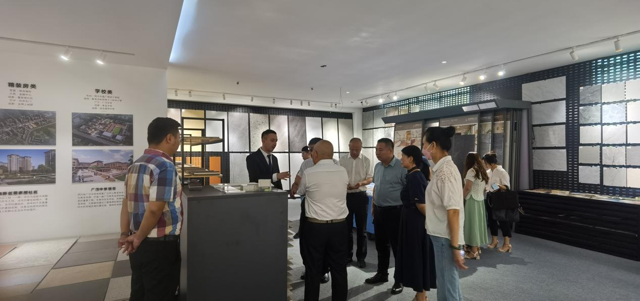 座谈会交流:考察的最后阶段,双方在公司会议室举行了深入的座谈会。徐远江总经理详细介绍了新西南陶瓷公司的“一带一路发展项目推进计划”,重点阐述了以威尼斯商人瓷砖品牌出口为先导,依托高端定制服务,与全球高端设计机构及项目业主建立紧密合作关系的战略构想。