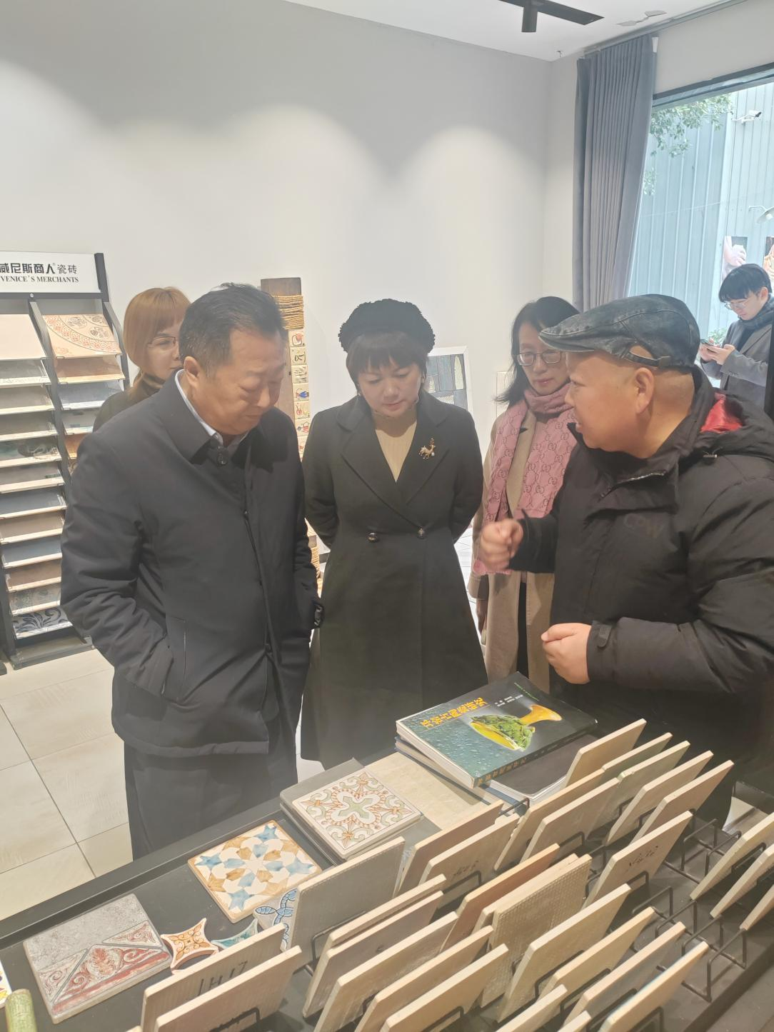 在参观过程中,胡秀强副书记一行详细了解了新西南陶瓷艺术公司如何利用邛窑传统技艺,通过创新传承,开发出独具特色的手工瓷砖、瓷砖家具、瓷砖壁画、陶瓷灯具、陶瓷礼品纪念品等产品,并对公司的创新能力和产品特色给予了高度评价。