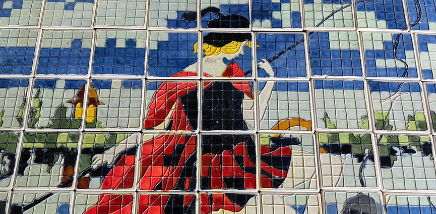 【上图为威尼斯商人瓷砖珐琅邛彩壁画,曾循、李正久等创作于2003年】