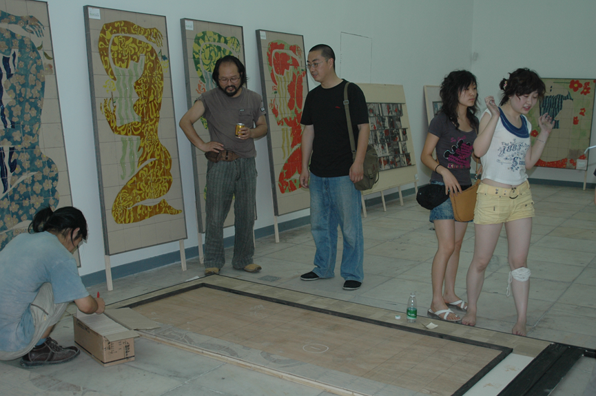 【上图拍摄于2007年第三届川音成都美术学院-新西南杯社会实践作品展布展现场,有相当数量的珐琅邛彩瓷砖壁画公开展出】