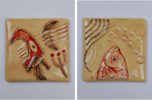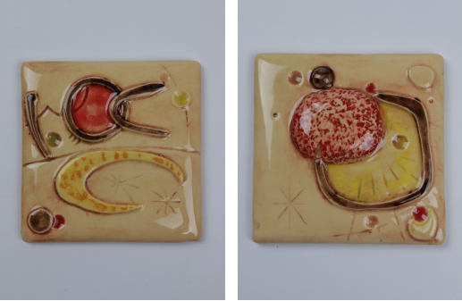 他们将邛窑彩绘技法应用于米罗风格的浮雕瓷砖创作中,以精湛的手工技艺,呈现出瓷砖表面的层次感和质感。抽象的线条和图案与邛窑彩绘的鲜艳色彩相结合,创造出充满动感和立体感的视觉效果。