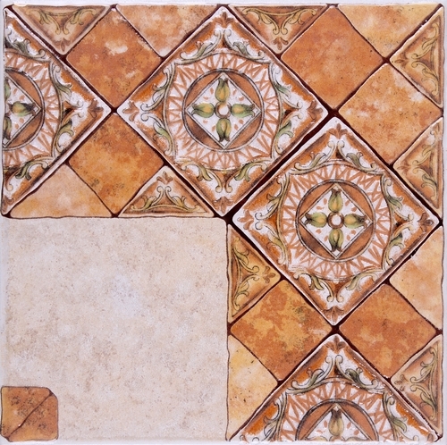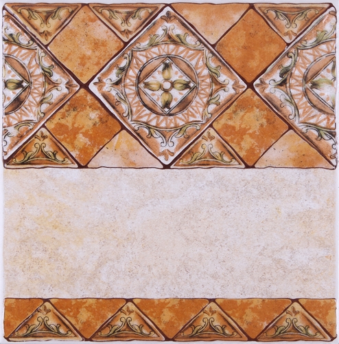 表现的是英式乡村风情,但又与传统的英式乡村风格有些差异,苏格兰由于地理位置的原因,花期要长于很多地方,同时花园具有比较独特的设计风格,这与苏格兰的民族风情有关。所以这款砖在设计上采用了三角形的独特组合方式,同时色彩以鲜亮的橘红为主体色,配以经典蔓藤花卉纹饰,表现苏格兰花园的色彩缤纷和热情的民族风格,是苏格兰风情的原味体现。