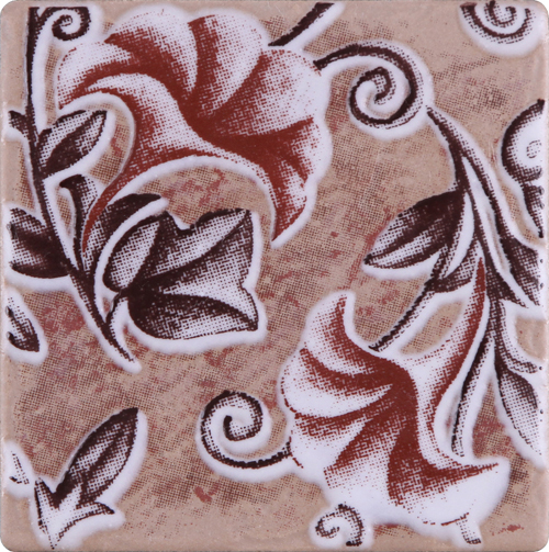 淡紫、浅红、嫩黄的花瓣、深紫的茎叶,褐色的泥土,弥漫在一望无际的原野。手工施釉的自然融合,多种色彩的高温渗透,绝无工匠痕迹的生态肌理表面,无不诠释着一款经典的瓷砖是如何炼成的。艺术美、人文美所显现的天然优雅的特性,造就非凡的精神气质。