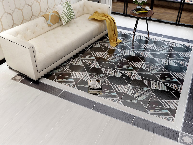用现代简约主义的色彩和形式去致敬巴洛克时期的人文情怀,将镶嵌和拼贴手法引入本次产品设计,将艺术家霍晓先生的书法作品“打破”作为题材,设计出了符合当代审美的“嵌影”系列。砖面釉色的表现效果不是堆砌而是流动,像是在渲染一幅巨型的画作,色彩在其中慢慢蔓延。渐变的色彩层次,几何图形的分割组合,黑白两种经典颜色,创造出不会轻易过时的艺术新品。